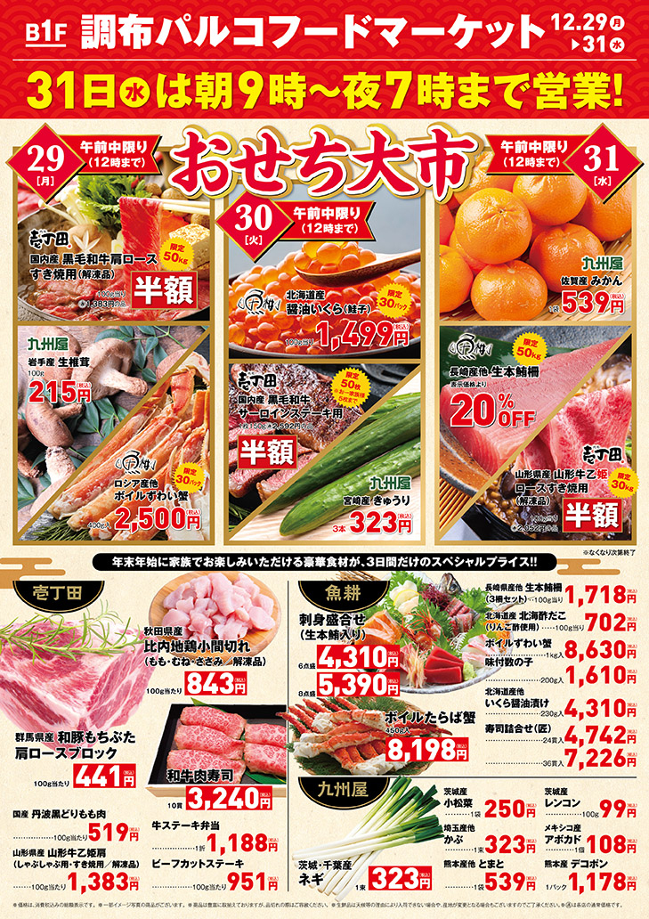12/29(월)~12/31(수) 파르코 푸드 마켓의 광고지는 이쪽